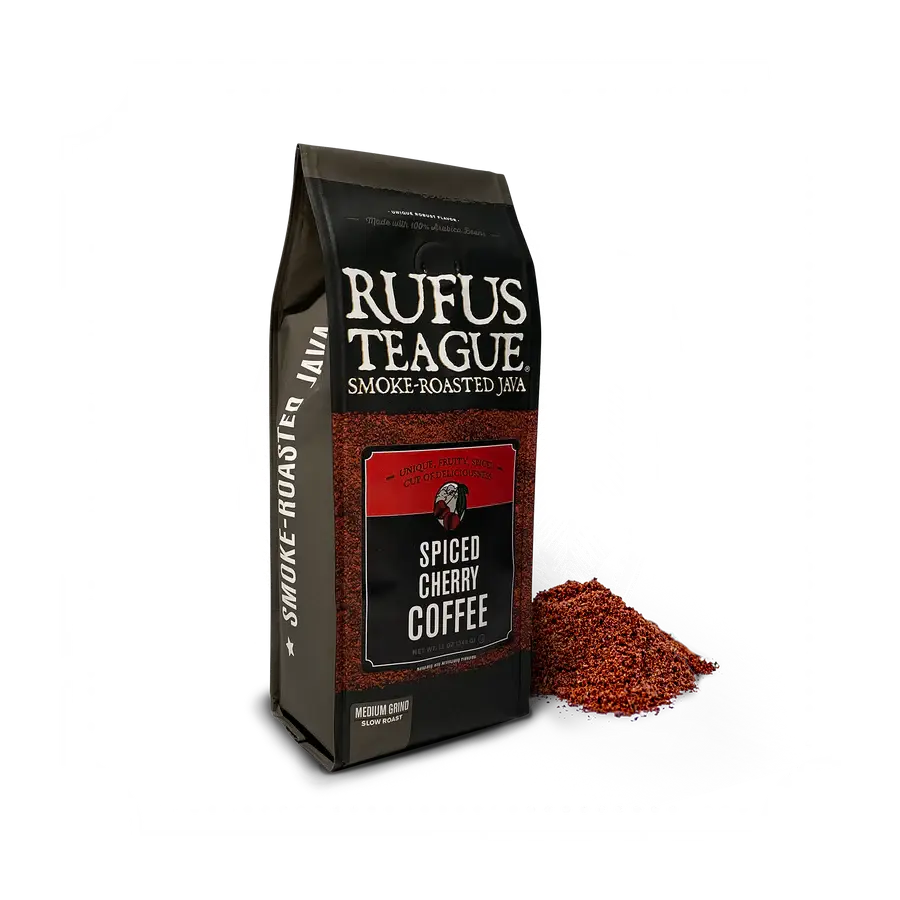 This SPICED CHERRY coffee is bold, unique and kissed with the smoky goodness that's made Rufus Teague legendary.