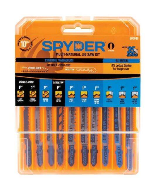 Includes BiM Coarse Tooth Jig Saw Blade, BiM Fine Tooth Jig Saw Blade (2X), Crv Straight Clean Cut Jig Saw Blade, CrV Fast Straight Cut Jig Saw Blade (2x), CrV Skeleton Clean Straight Cut Jig Saw Blade (2x), CrV 2-Sided Fine Curve Cut Jig Saw Blade (2x)