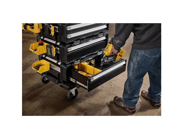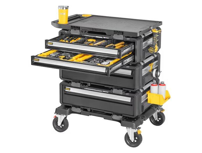 Store, secure, transport, and work with the TOUGHSYSTEM® 2.0 DXL™ 5-in-1 Tower. The TOUGHSYSTEM® 2.0 DXL™ lineup is the industry's first 30 in. modular workstation system. Consisting of 5 independent products that can be arranged to best suit your needs, this ergonomically-designed portable workstation features a convenient height, a tough-terrain Dolly, a 30 in. 2-Drawer Unit, (2) 30 in. Deep Drawer Units, and a functional Worktop. Help maximize accessibility to your tools and keep them organized with the TOUGHSYSTEM® 2.0 DXL™ 5-in-1 Tower that offers productivity at every turn.