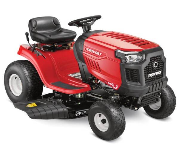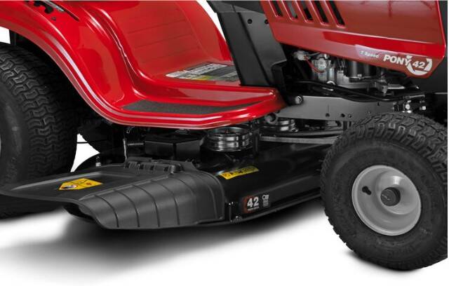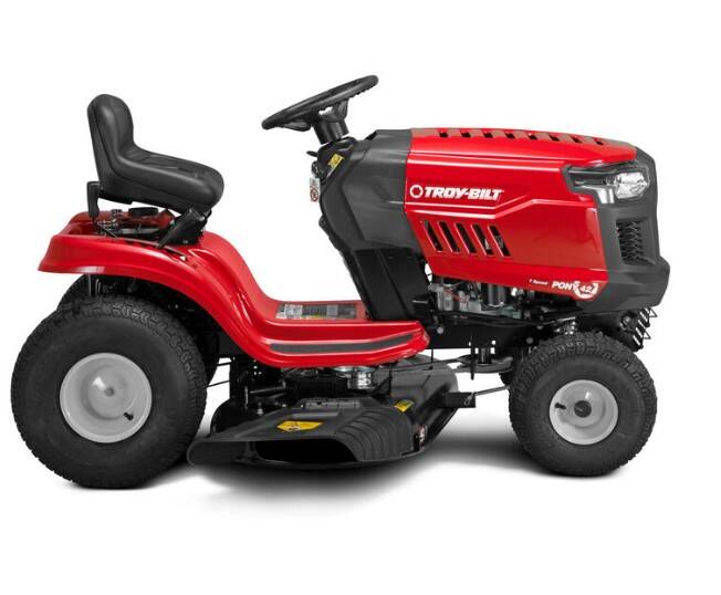 The Troy-Bilt® Pony® 42 helps you quickly tackle yardwork with a 42" cutting deck. The Step-Thru™ frame is designed for easy on-and-off access with ample legroom. 7-speed Shift-on-the-Go™ lets you easily adjust and control the mowing speed. Now with a 3-year limited warranty.