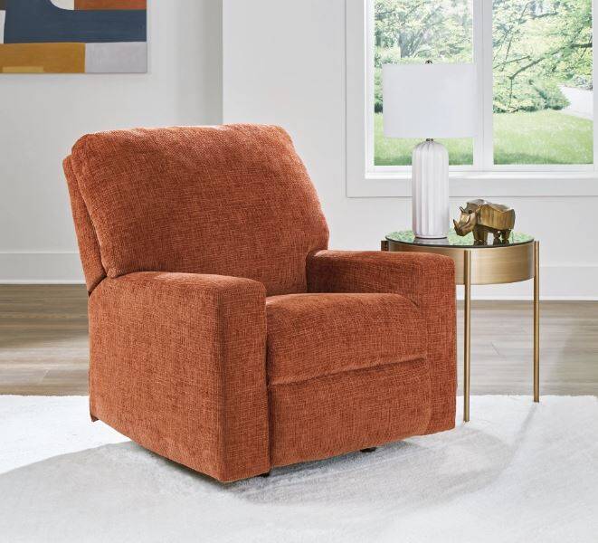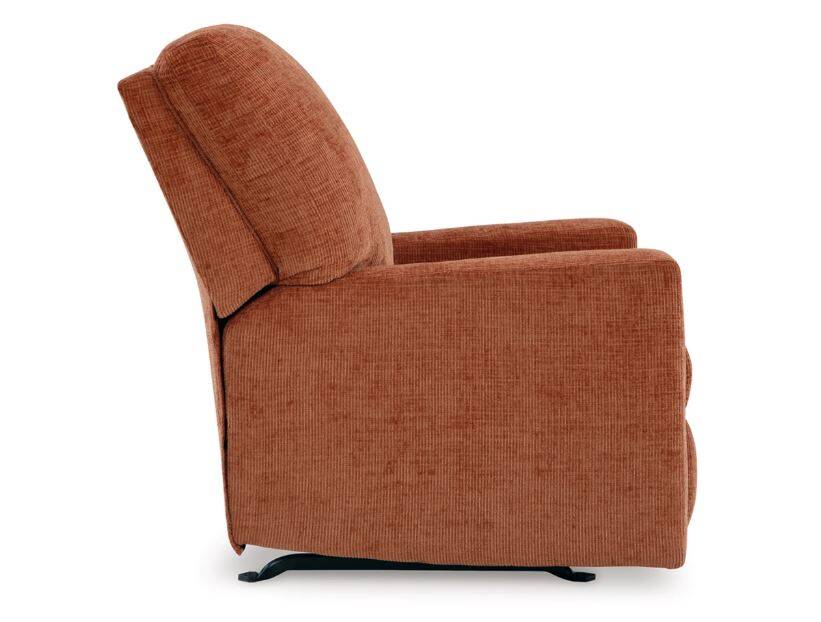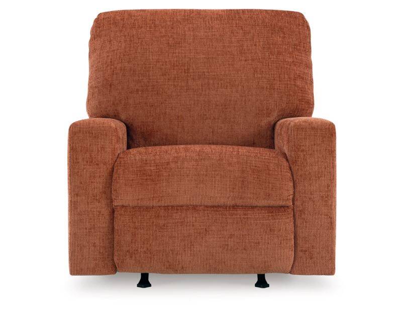 Looking to make a bold statement with color? Liven up your living room with the Aviemore rocker recliner. Its trend-right burnt orange upholstery adds a playful pop of color to your decor. Pairing posh style with everyday comfort, this piece is a welcome addition to contemporary spaces.