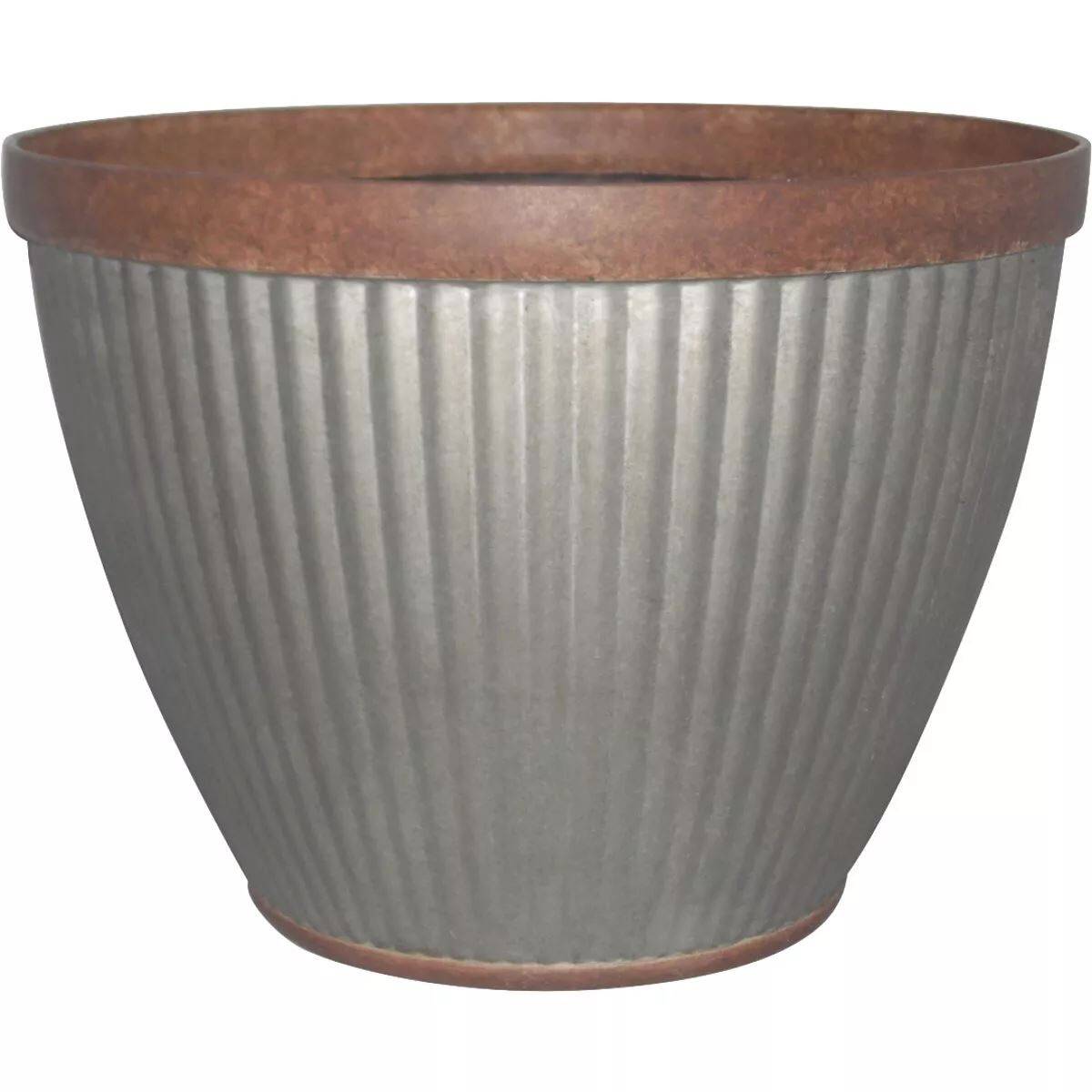 Weathered and rusted planter that adds an old-fashioned feel to any outdoor living area. The grooved pattern introduces texture, while the galvanized finish emphasizes the decorative planters time-honored traits. Lightweight and durable resin construction is resistant to the elements, protected against fading, and sure to provide a safe environment for any shrubbery to flourish. Easy to move and maintain.