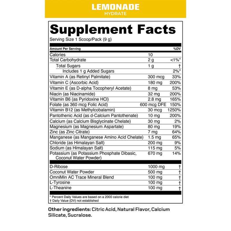 HYDRATE™ Hydration Recovery Recharge Dietary Supplement In Lemonade Flavor Trail Pack - 20 Single Packs
