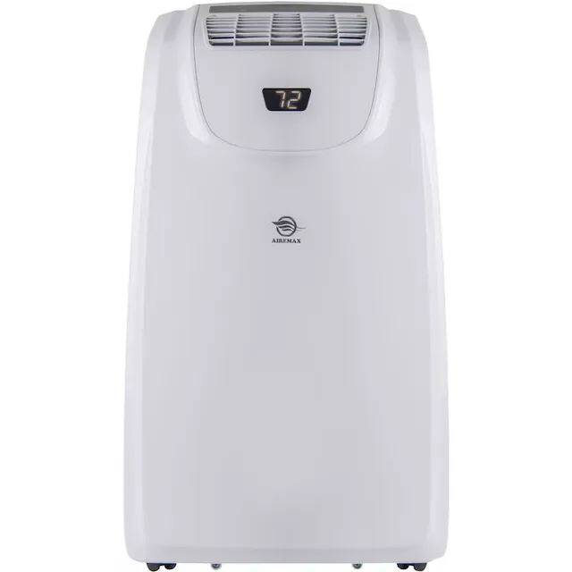 The AireMax 8,000 BTU Portable Air Conditioner, 14,000 BTU ASHRAE standard, is the perfect comfort option for any home. Ideal for cooling any bedroom, dining room, kitchen, bathroom, attic, or home office up to a 500 square foot maximum. Not only is this a unit a powerful air conditioner, but it also doubles as a dehumidifier and will remove up to 78 pints of moisture from your home per day. Add a supplemental heat source to your home with the 11,000 BTU heat-mode option. Designed with a self-evaporative system, the unit condensates water recycled inside for efficient cooling. Equipped with cooling options tailored to your preferences, the AireMax portable unit has 3 air flow speeds, plus auto 1-way directional air louvers for effective air movement while in use. At night, take advantage of the 24-Hour Programmable Timer or Sleep Mode function for minimal maintenance and consistent cooling at all hours of the day. If you ever lose power, this unit is equipped with an Auto Restart function that will automatically turn back on to the last temperature you set it at. Easily transport your unit to any room in your home with 4-way casters and convenient side handles. And with removable mesh filters, simply vacuum and wash for stress-free upkeep of your AireMax air conditioner.