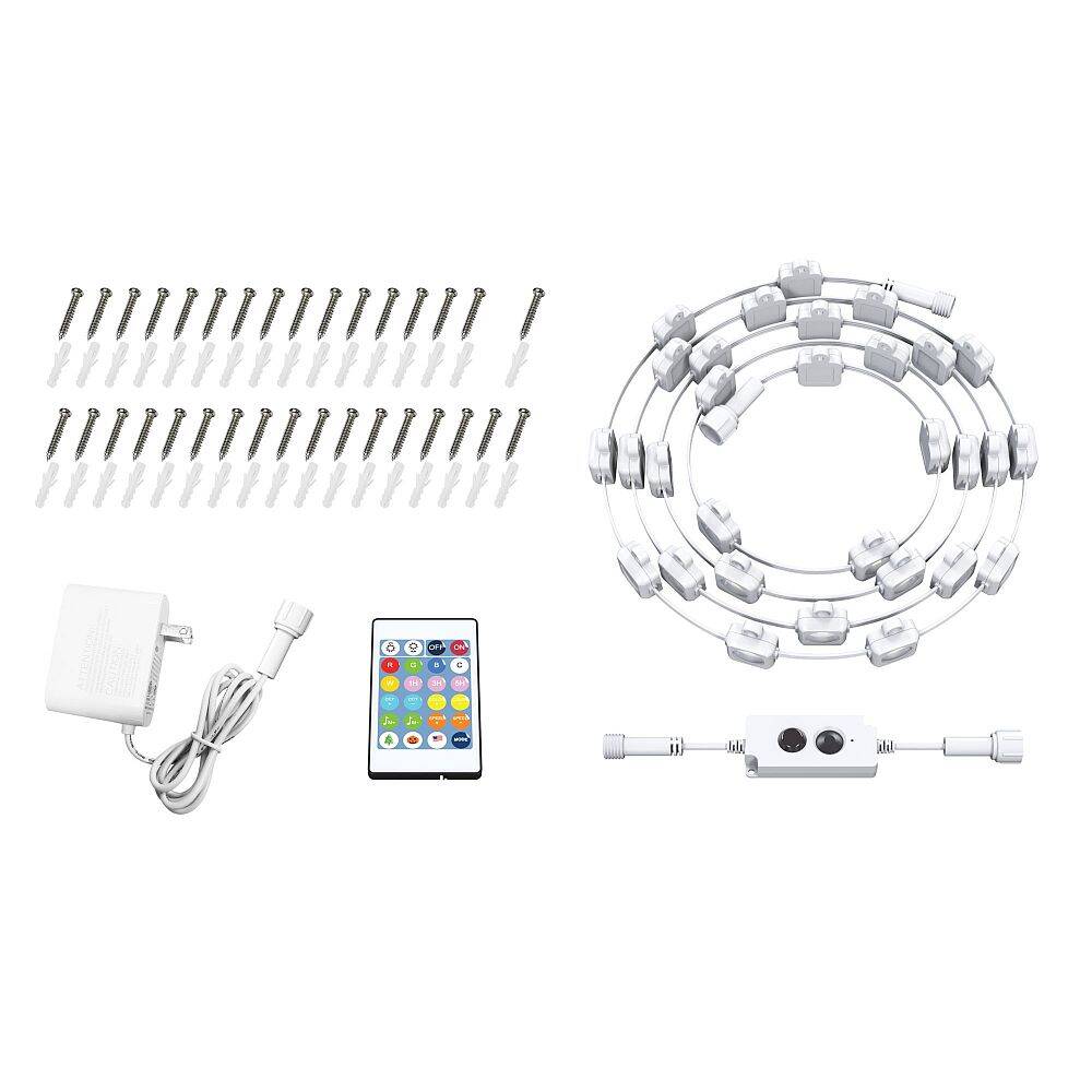 Brighten up your neighborhood with the Pinegreen Lighting 50ft. Permanent LED Outdoor String Light! This light kit comes with 30 color changing LED lights and a remote with 21 color settings, 13 lighting effects, and multiple music sync modes. Share your holiday spirit with presets for Halloween, Christmas and 4th of July, or just use the warm or cool white setting to accent your home any time of the year. This kit can be linked with up to 3 other kits to create 150ft.! (If linking this with the 25ft. String [CL-25PSL-RGBWWIC], the 50ft. power adapter must be used to obtain best results.). This kit is the perfect accessory to accent your home year-round!