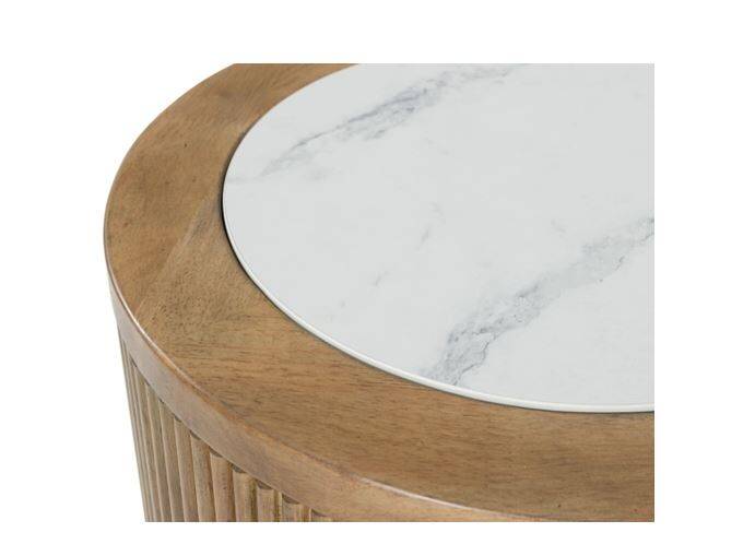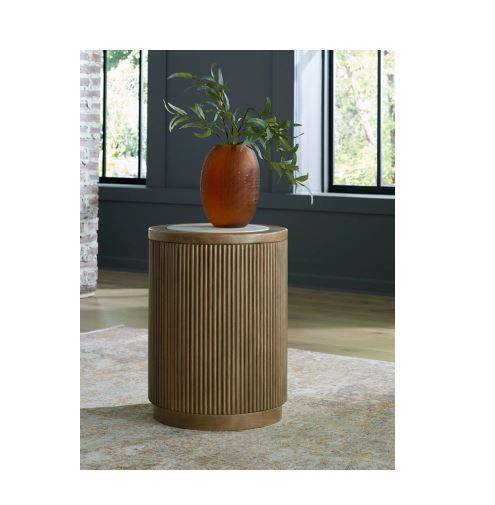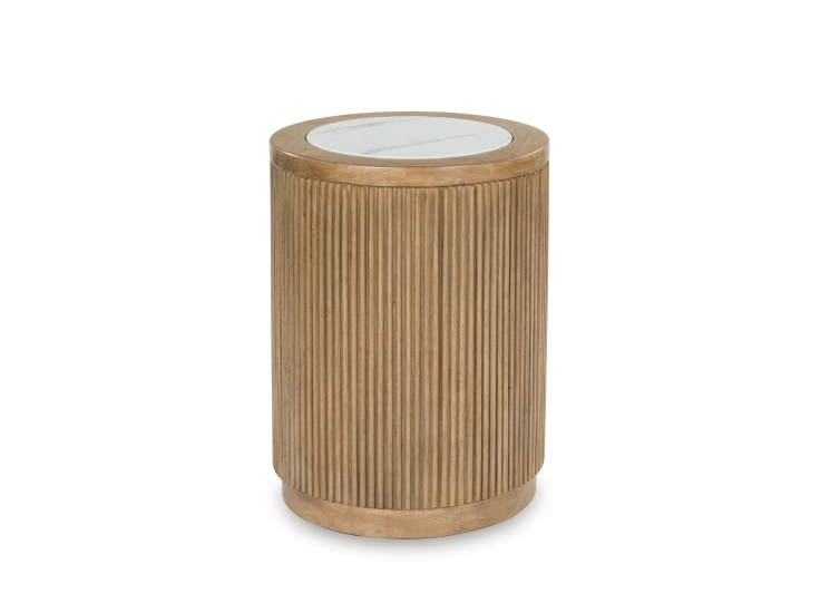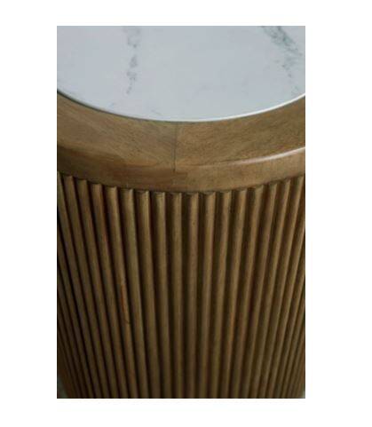 Elegance meets earthy charm in this end table. Crafting a contemporary living room? The faux marble top expertly pairs with the reeded base for a trend-right take on day-to-day function. It’s an ideal spot to rest remotes, a drink or small decorative accents.
