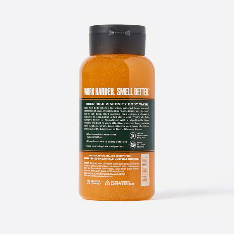 That's why Duke Cannon's THICK is formulated with a noticeably higher viscosity and built to work effectively on your body, not spew down the shower drain.