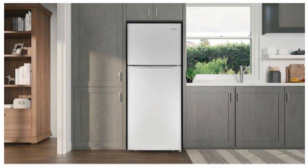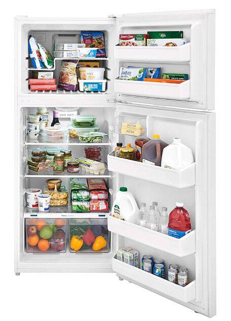 This 18 cu. ft. top freezer refrigerator includes spacious interior storage options designed for busy families.