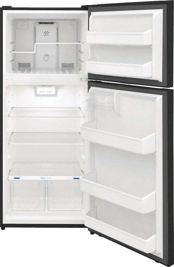 This 18 cu. ft. top freezer refrigerator includes spacious interior storage options designed for busy families.