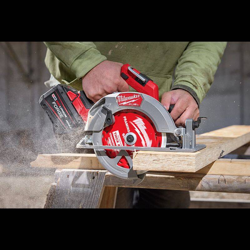 Our Thick Kerf Framing Circular Saw Blades offer the straightest cuts and longer life in wood. These blades are designed with a High Performance Thick Kerf, allowing you to get the straightest rip cuts and ultimate stability in softwoods, hardwoods, lumber, and laminated woods. The diamond venting pattern allows for cool cutting and improved chip ejection while the cobalt-infused carbide teeth stay sharper longer. Our Thick Kerf Framing Blades are optimized for the most powerful cordless saws, providing strong performance even at the highest RPMs.