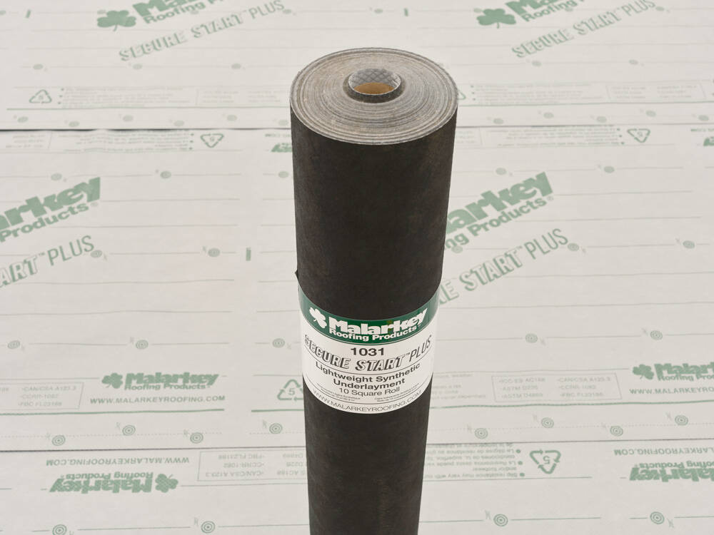 Secure Start® Plus is a lightweight, synthetic underlayment designed with anti-skid technology, which securely holds the underlayment in place and provides a more walkable surface for greater installation safety.