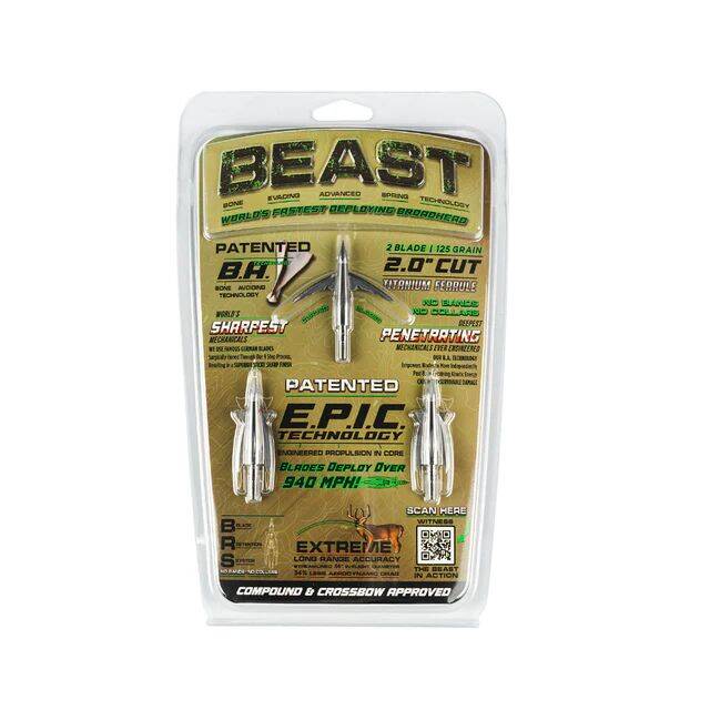 - Bone Evading Advanced Spring Technology (BEAST): Features blades that retract and redeploy when encountering bone, preserving sharpness and kinetic energy for unmatched penetration.