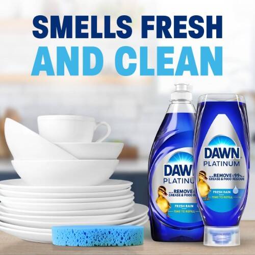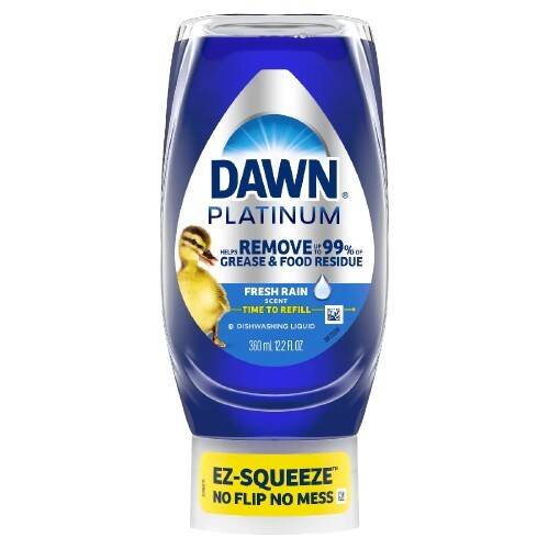 It's time to stop shaking and start squeezing. With the Dawn EZ-Squeeze bottle, there's no flip and no mess. Dawn Platinum gives you a squeaky clean that you can see and feel. Dawn Platinum's improved formula easily removes 99% of grease and food residue. Dawn is tough on grease, but gentle. Gentle enough that Dawn is the only brand of dish soap trusted by rescue workers to clean wildlife impacted by oil spills. For more than 40 years, Dawn has helped save wildlife both at the sink, with products designed to get dishes cleaner faster, using less water*, and at the shore, where we work with wildlife rescue experts to protect and care for aquatic wildlife. Dawn dishwashing liquid can even be used to clean items beyond the kitchen sink. Use Dawn Platinum dish soap to pre-treat greasy laundry stains, remove grease and grime from kitchen counters and appliances, and to clean external car surfaces and the outer shroud of a gas grill. Dawn Ultra's powerful formula helps you get through more dishes with less** dishwashing liquid. Made with biodegradable surfactants. #1 Brand*** in North America.