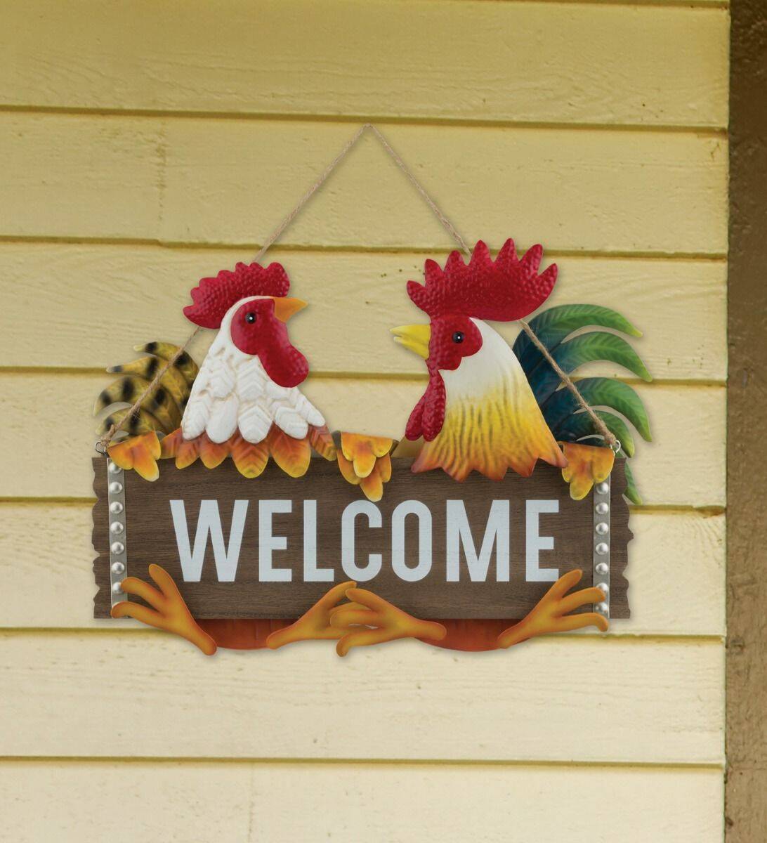 Metal Rooster Welcome Sign