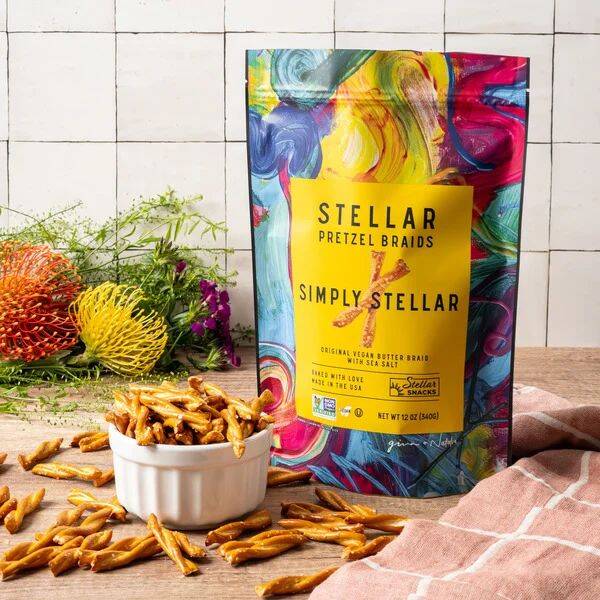 Classic pretzels with a wholesome twist. Simply Stellar pretzel braids are infused with naturally rich vegan butter and sprinkled with the perfect pinch of sea salt. Delicious on their own or paired with your favorite dip, these vegan pretzels are a canvas for flavor.