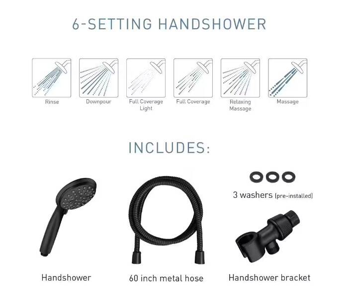 Attune Black 6-Spray Patterns Tub & Shower Handheld Shower