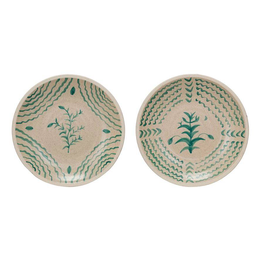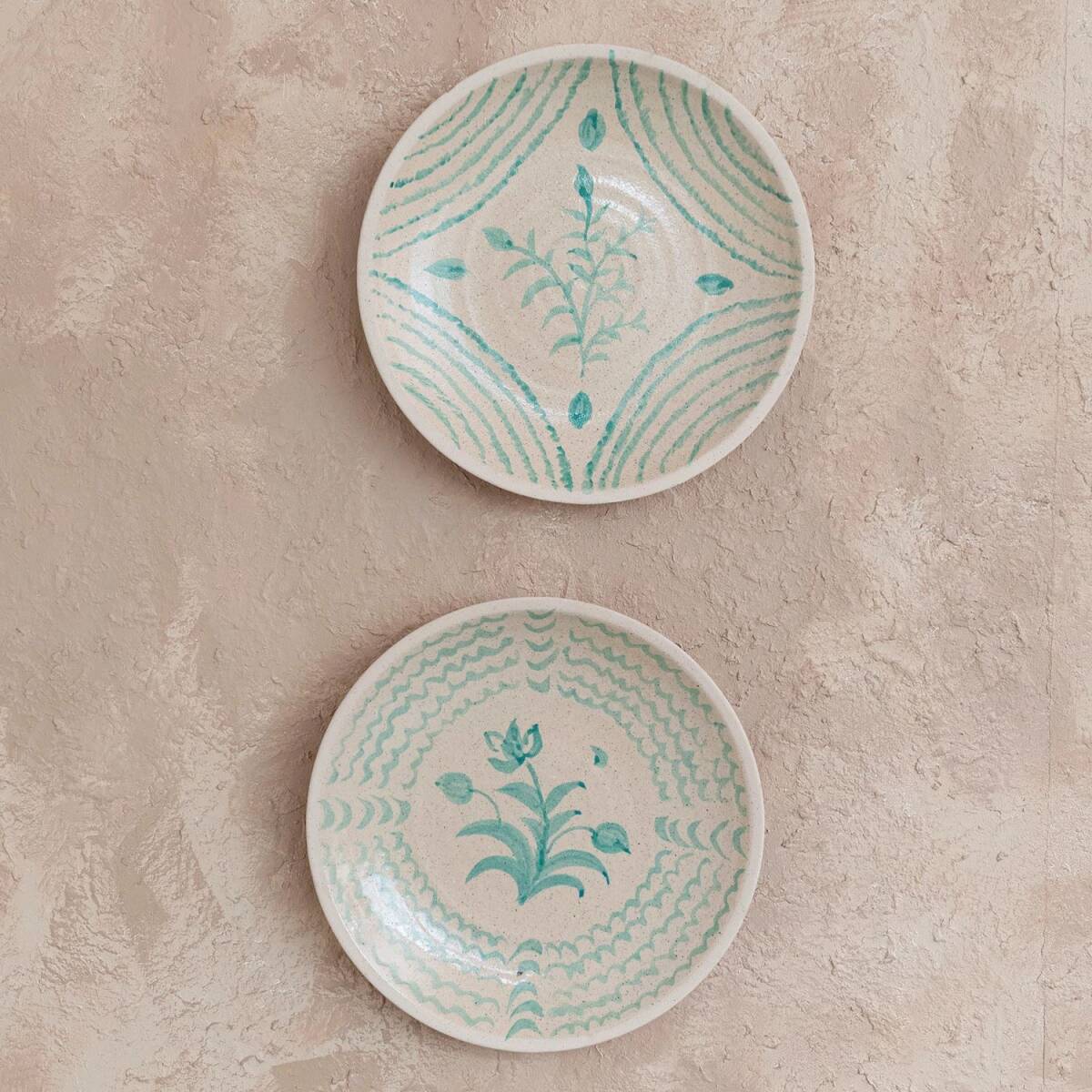 16-1/4-Inch Round X 2-1/2-Inch Diameter Cream Hand-Painted Terra-Cotta Wall Plate, Crackle Glaze, 2 Assorted Styles