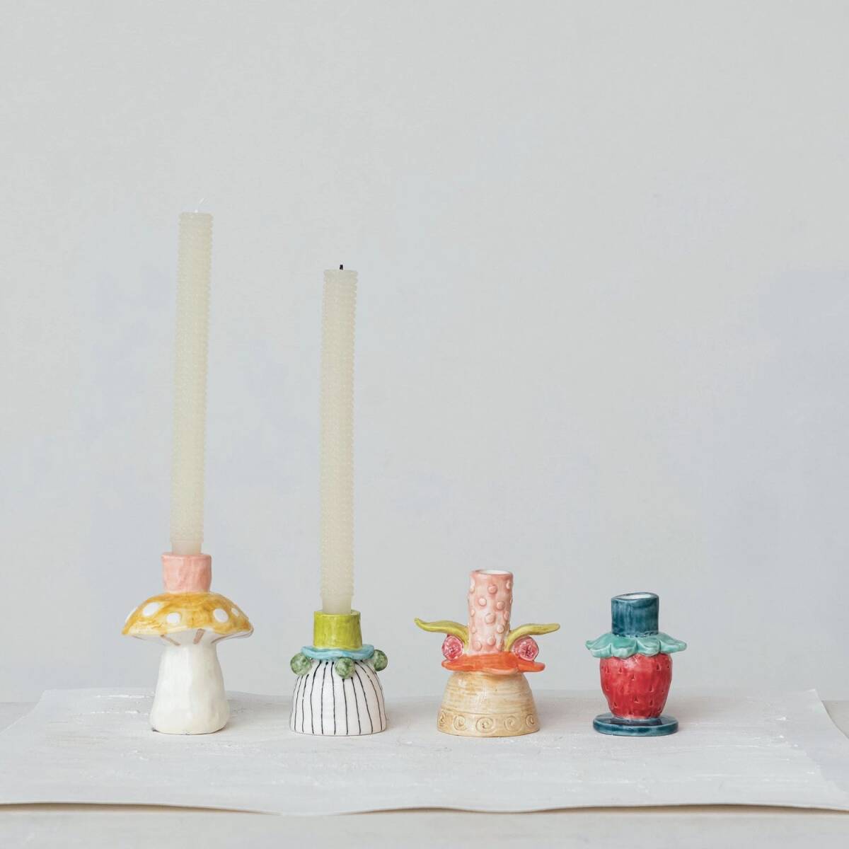 5-Inch Hand-Painted Mushroom Taper Candle Holder