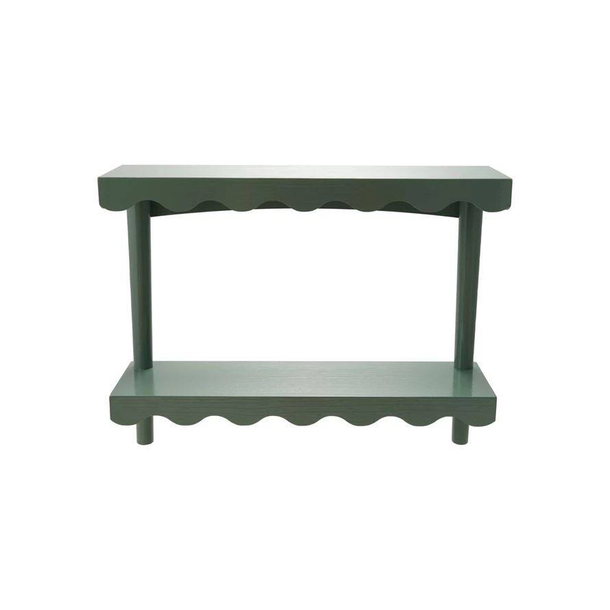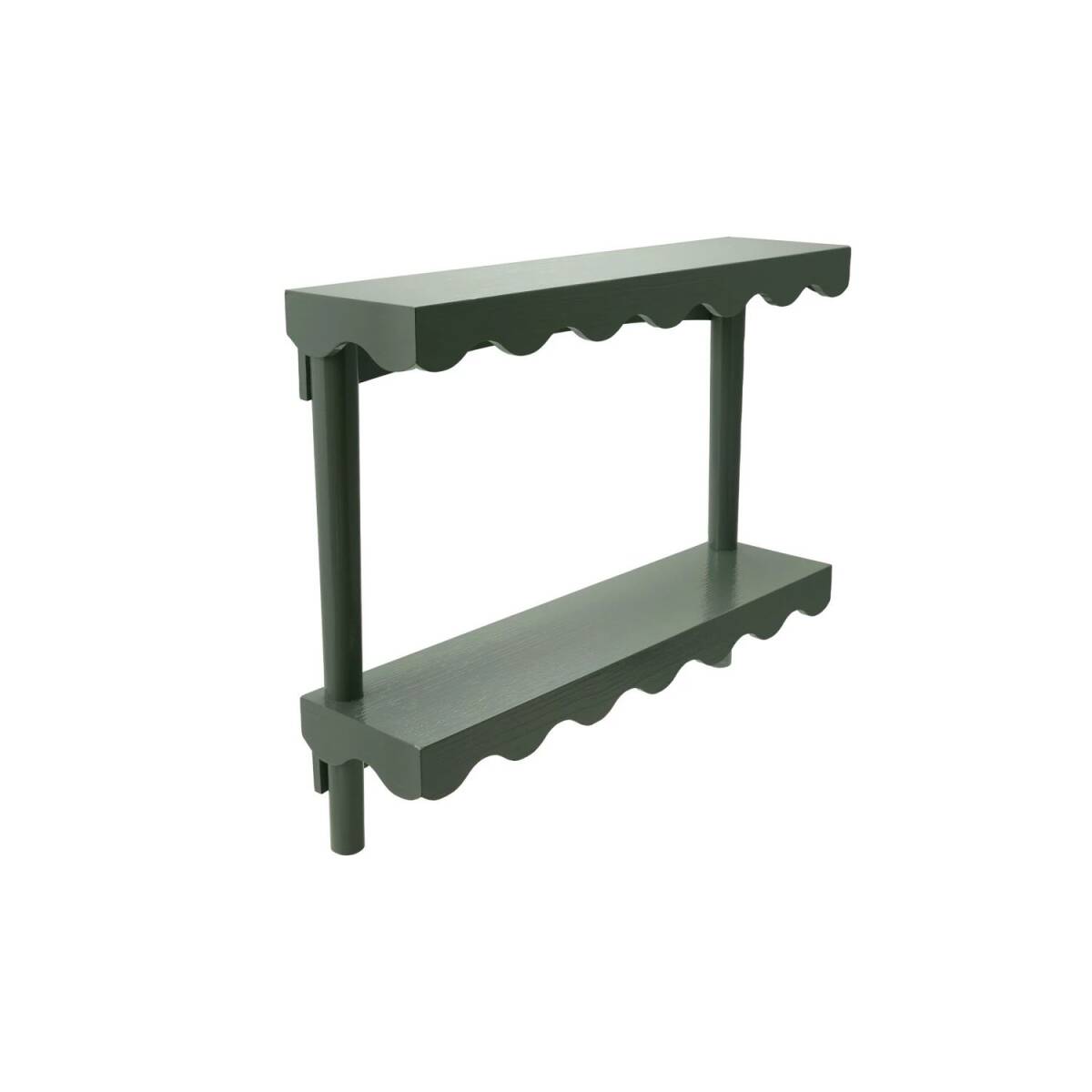 Eucalyptus Color Wooden Scalloped Wall Shelf With 2 Shelves