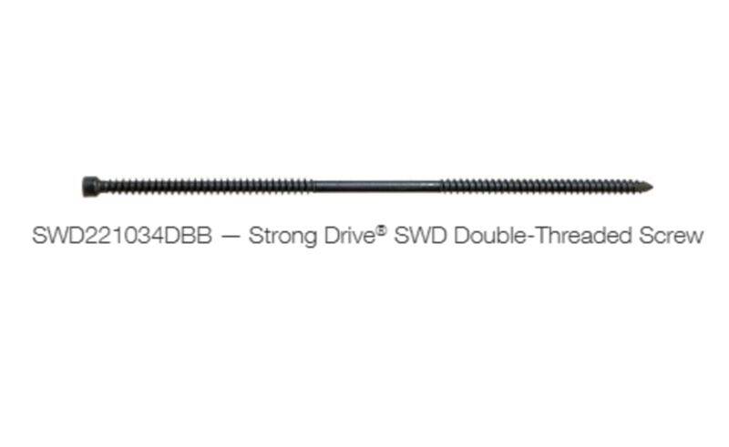 Introducing the new Strong-Drive SWD Double-Threaded screw. This innovative fastener designed for stealth, strength and speed is ideal for securing two wood members together on exterior or interior structural jobs. Available in an assortment of lengths, the SWD™ screw can be used in a variety of applications such as knee bracing, fastening beam to post, beam to joist, or guardrail to post with ease. The screw features a chisel point for reduced splitting, a smooth, unthreaded mid-shank to secure wood members tight, and a compact head for low visibility. Code listed for structural applications, the SWD has a black, exterior-grade, double-barrier coating for corrosion resistance.