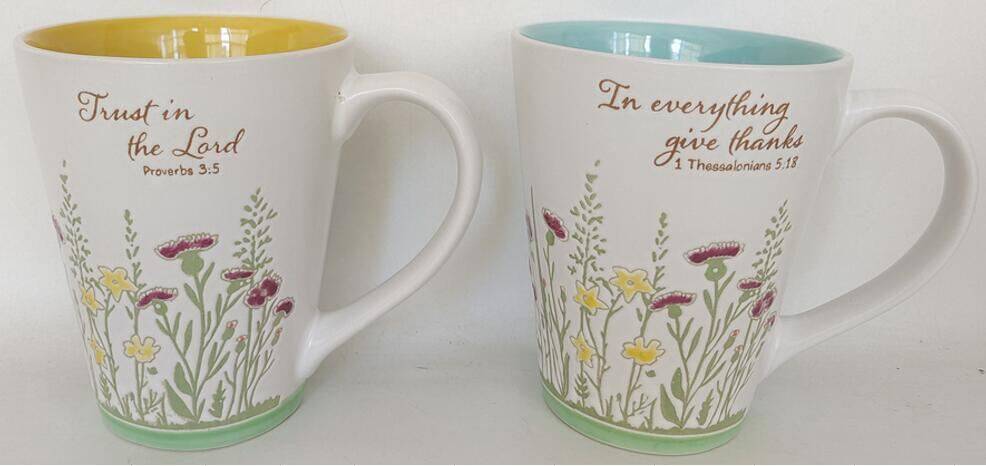 Enjoy your favorite beverage in Blue Sky Clayworks' Spring Pressed Religious 17Oz Mug. Ideal for use, this artistically crafted and hand-painted mug reflects our brand's long-standing commitment to high design and exceptional manufacturing techniques. Its unique design sets it apart, making it more than just a coffee mug - it's a piece of art.