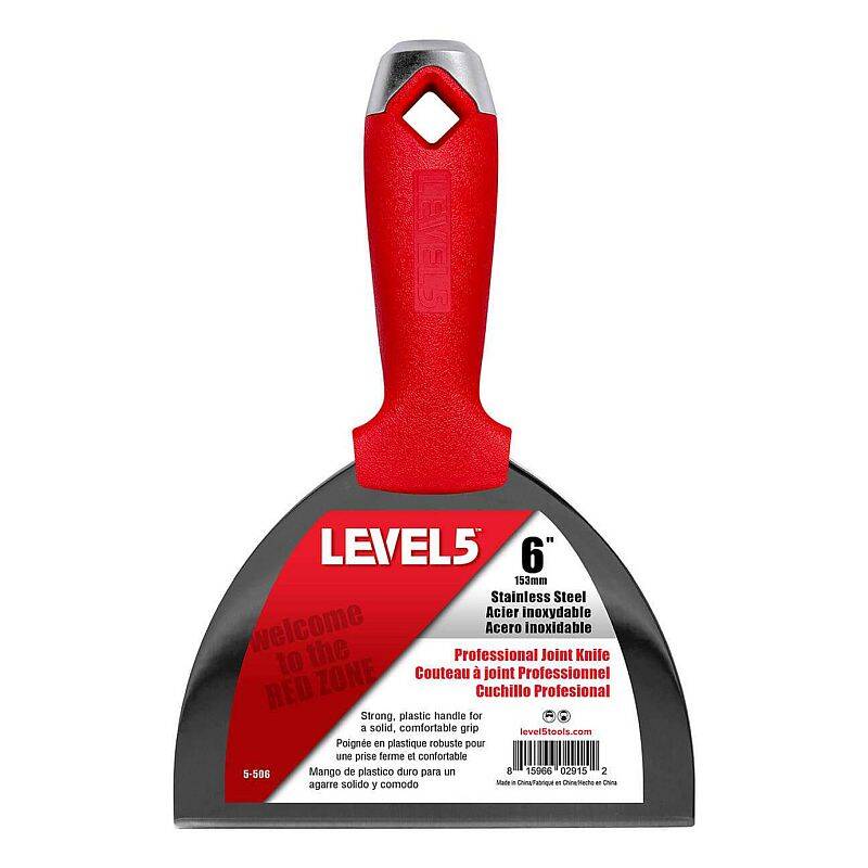 LEVEL5 Stainless Steel Joint Knives with Composite Handles feature lightweight solid polypropylene handles that are both impact and solvent-resistant. The proprietary grip profile was developed through years of finisher feedback to minimize hand fatigue during all-day use. These knives also feature premium stainless steel blades with a number of features and innovations to ensure peak finishing performance.
