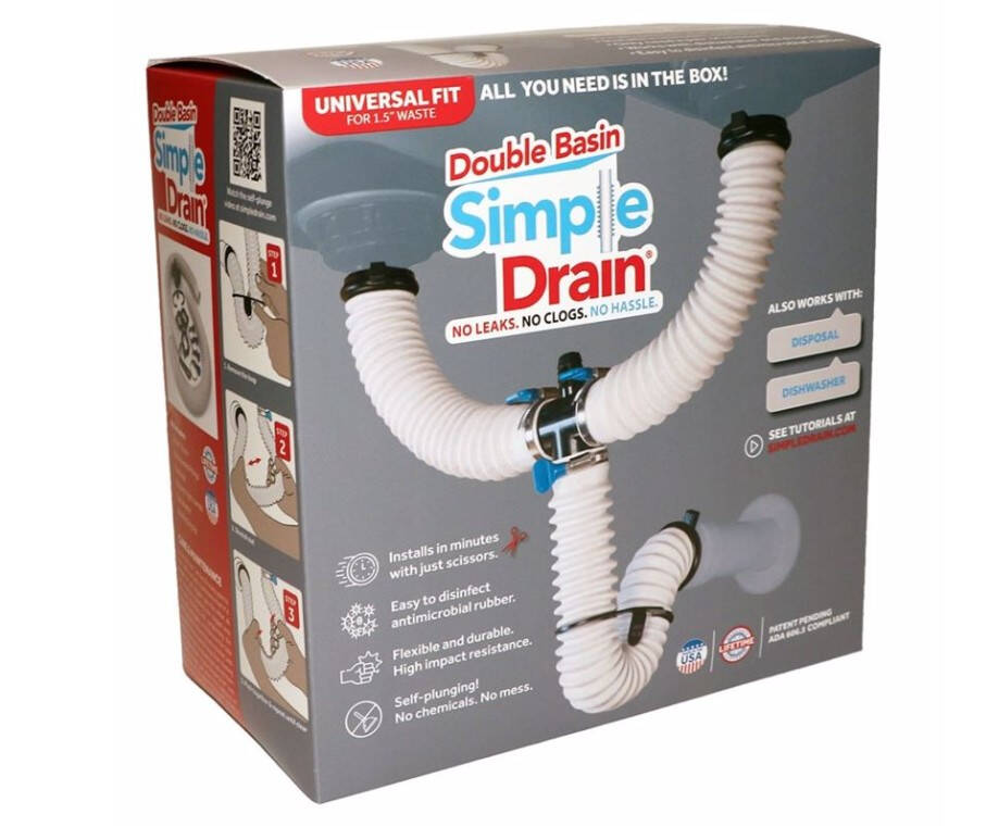 Simple Drain Craft Paint, Specifications: Threaded, Clamped Connection, Brass/Rubber, White, Textured, Dimensions: 1-1/2 in Dia, Suitable for: Double Basin Kitchen Sink, Includes: (2) 24 in Hoses, (3) Threaded Fitting Trap Loop, (4) Hand Tight Clamps Tee Adapter and Disinfecting Clip