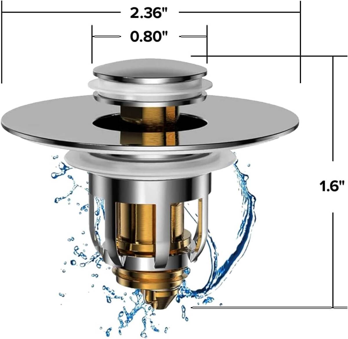 Mer-Maid Drain Magic utilizes a long-lasting silicone gasket that creates a watertight seal without messy plumber's putty. Press the spring-loaded stopper and the water is gone. Made of brass and finished in high-quality chrome, Mer-Maid Drain Magic is rust-resistant and built to last. No more unclogging, no more broken stoppers, and no more rusted ugly drains.
