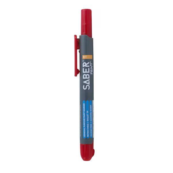 Free-up one hand to complete your task while never losing a cap again. The FIRST EVER retractable paint marker, SaberPaint™ RT leaves a long lasting, Xylene-free, opaque mark. Remains permanent on almost any dry or damp/oily surface: Metal, Plastic, Glass, Paper, Rubber, Cement, Tile, Wood, Stone, Vinyl.