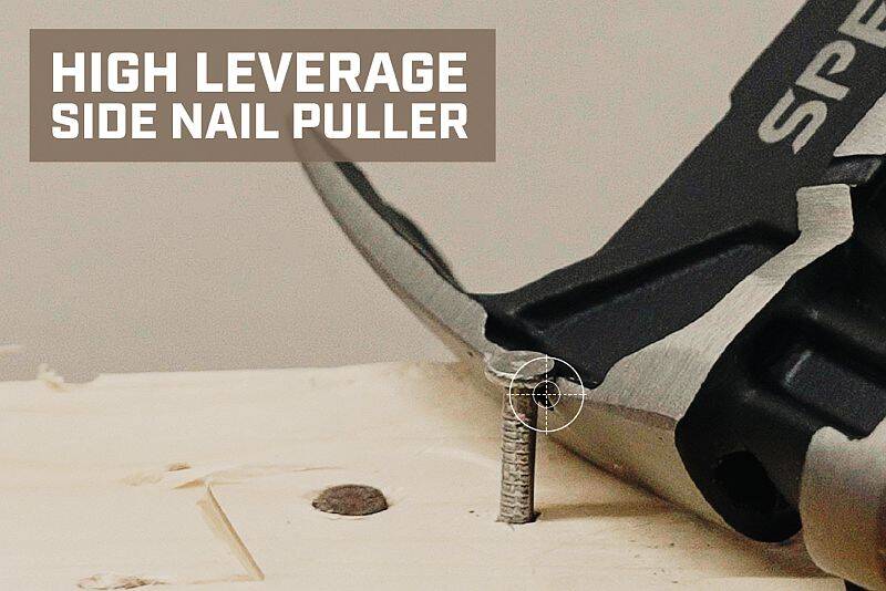 - Side nail puller increases leverage for easier extraction of stubborn nails or when in confined spaces