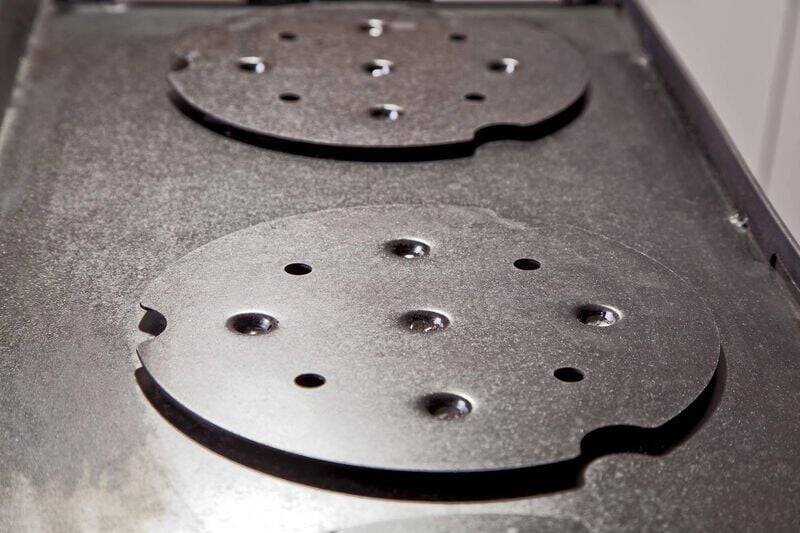 • Heat diffuser plates evenly distribute heat and reduce hot spots on the griddle.