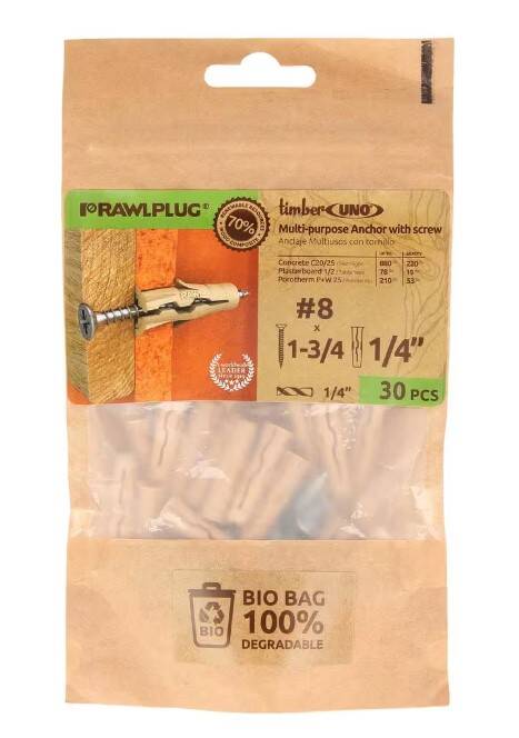 Uno Timber Multi-Purpose Drywall Anchors 1/4-Inch with Screws #8 x 1 3/4-Inch