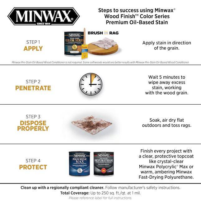Exceptional color, exceptionally easy. Available in 240+ oil-rich colors, this stain combines the ease of one-coat, spatter-resistant coverage with an ultra-premium, oil-based formula that applies evenly and dries fast. Ideal for any size project. FOR INTERIOR WOOD SUBSTRATES ONLY.