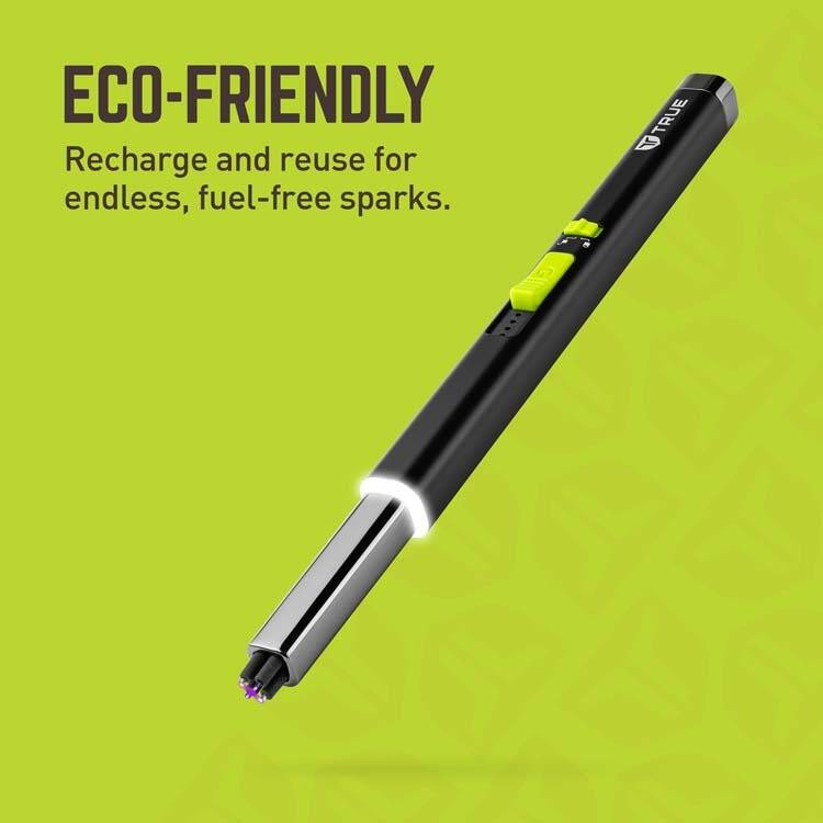 Starting a fire has come a long way from using single-use matches and fuel lighters. The TRUE Plasma Lighter Wand brings advanced plasma arc technology to the table. It’s flameless, fuel-free, windproof, and rechargeable. A full charge provides up to 100 ignitions—about the same as a 100-count box of matches—and you can use it repeatedly.