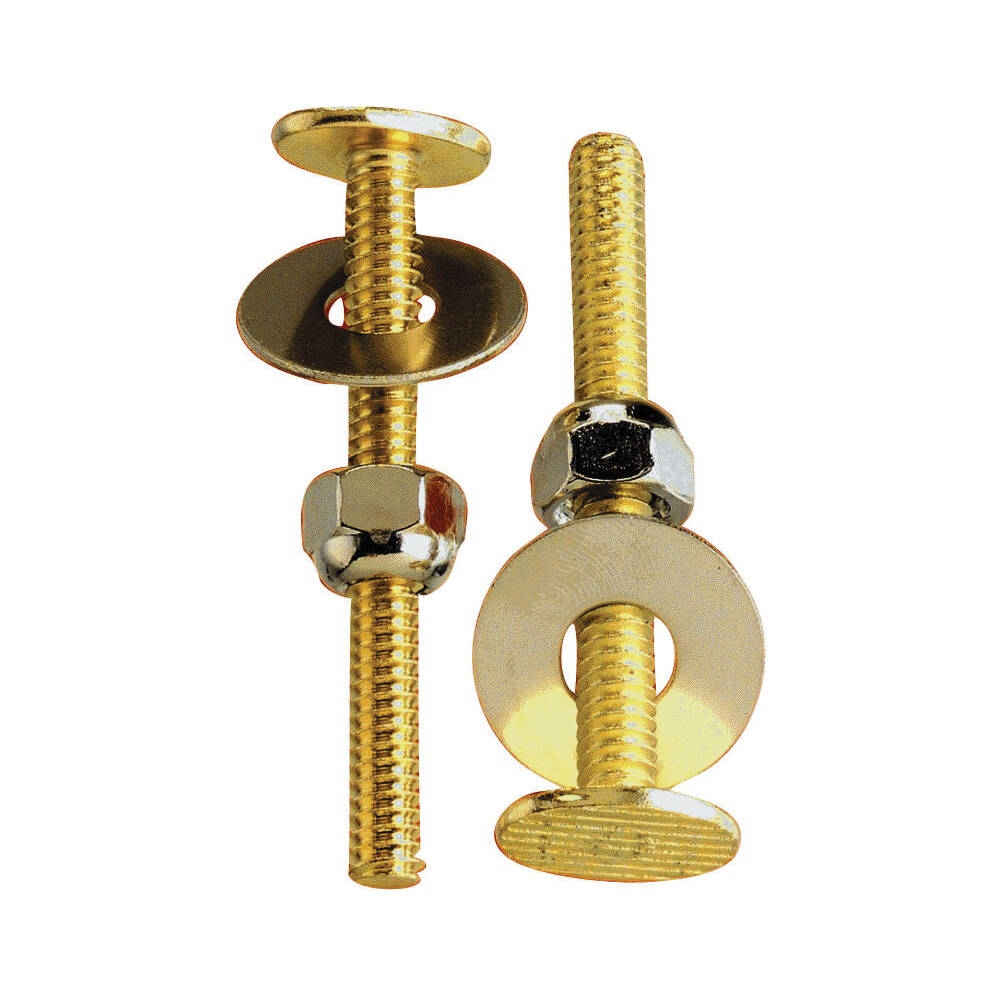 Includes two brass-plated bolts, two washers and two nickel-plated nuts.