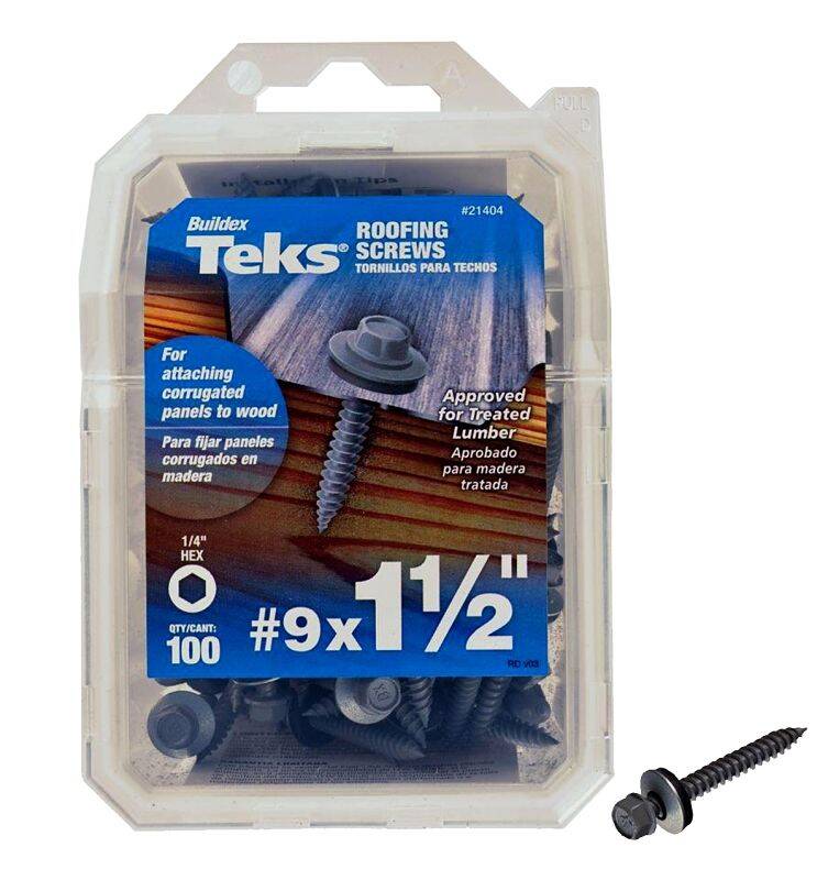 1-1/2-Inch 21404 #9 Fine Thread Hex Drive Washer Head Roofing Screw Pack Of 100