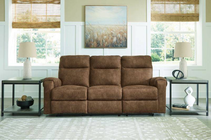 The Edenwold reclining sofa is your best shot for comfort and total relaxation. Its super soft faux leather, contemporary bustle back and contrast stitching team up for a big win with most any color scheme and room decor. With the pull tab reclining motion, you're on your way to endless relaxation at home solo or when hosting friends.