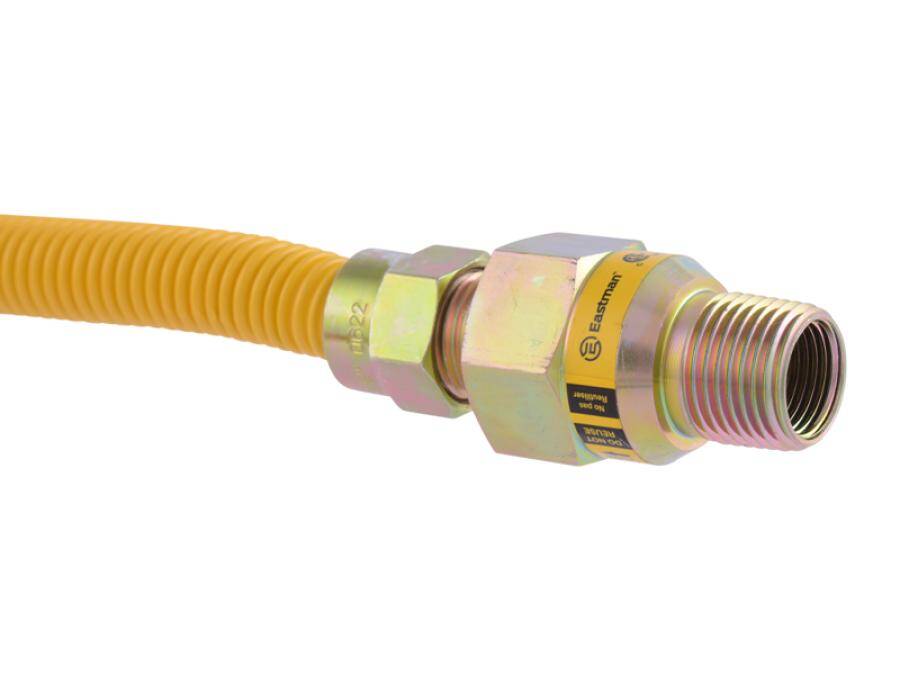 The Eastman™ 1/2-IN OD gas dryer connector kit is designed to connect most major brands of gas dryers to a shut-off valve. The connector is certified for use with most dryers with gas ratings up to 60,500 BTUs. The gas dryer connector kit includes an ArmorBoost™ EFV (thermal excess flow valve). The ArmorBoost™ EFV from Eastman™ is designed to help protect you and your family from catastrophic ruptures or disconnects in your gas line. The ArmorBoost™ valve immediately restricts gas flow to help protect you from the build-up of flammable gas. The valve will remain activated until the gas line is properly repaired. For added protection, the ArmorBoost™ EFV features a special fire-safe thermal ring that expands to stop gas flow when extreme temperatures of 350? + are reached. The DuraCoat™ Epoxy Coating provides extra protection from corrosion, chemical stains from common household products, and UV rays and is approved for indoor/outdoor use.