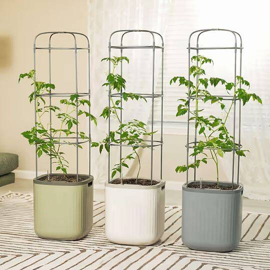 Cream White Self Watering Tomato Planter With Trellis