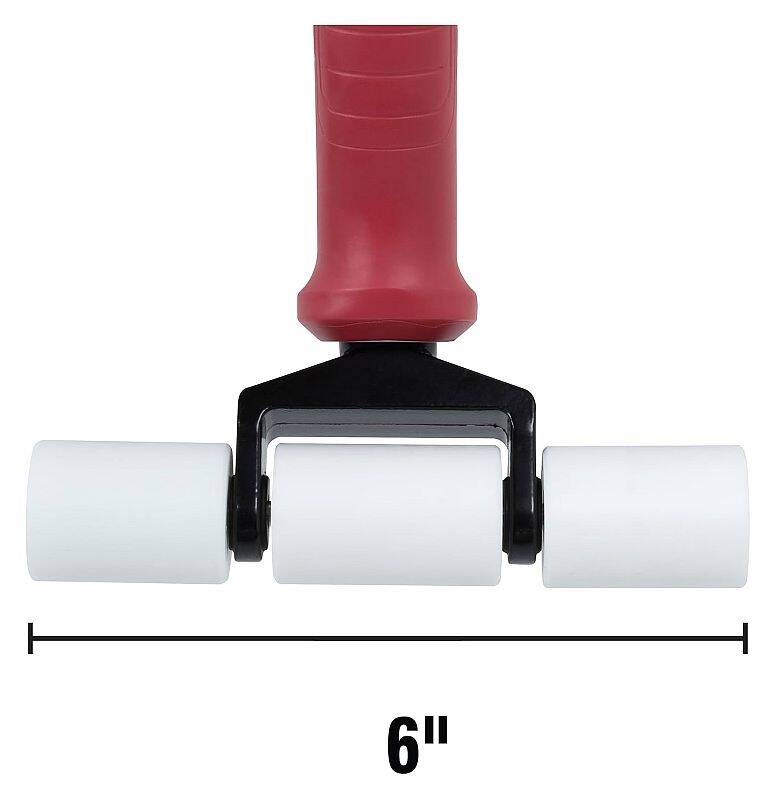 ROBERTS 6-Inch Pro Cut Pile Carpet Seam Roller is specifically designed for seaming cut-pile carpet, Saxony carpet, and vinyl flooring. The smooth roller head seams the carpet without fraying the yarn ends, providing a seam with no gaps or overlays. The extra-wide 6-inch head produces better pile transition over the seam, and is optimally sized for use with most brands of seam tape. This roller is designed with non-marring, recessed hardware to prevent damage to walls or baseboards, and features a longer ergonomic handle that provides a better grip and produces more seaming force and stability. The textured grip prevents slipping.