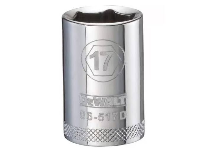 Drive Socket, 17 mm Socket, 1-1/2 in OAL, 1/2 in Drive, 6-Point, Vanadium Steel, Polished Chrome