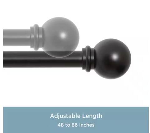 5/8-Inch X 48-86-Inch Black Ball End Cafe Rod
