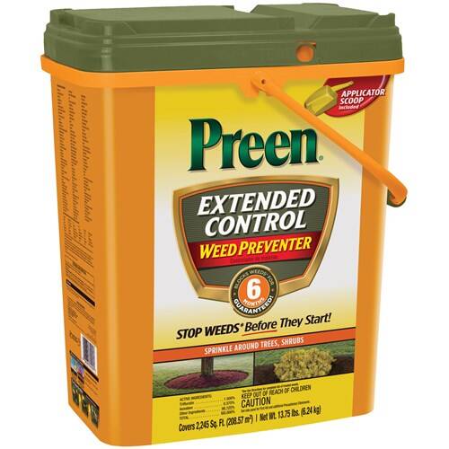 - When used as directed Preen Extended Control Weed Preventer can be used around more than 600 perennials, groundcovers, shrubs and trees as listed on the product label