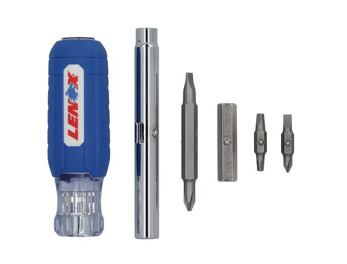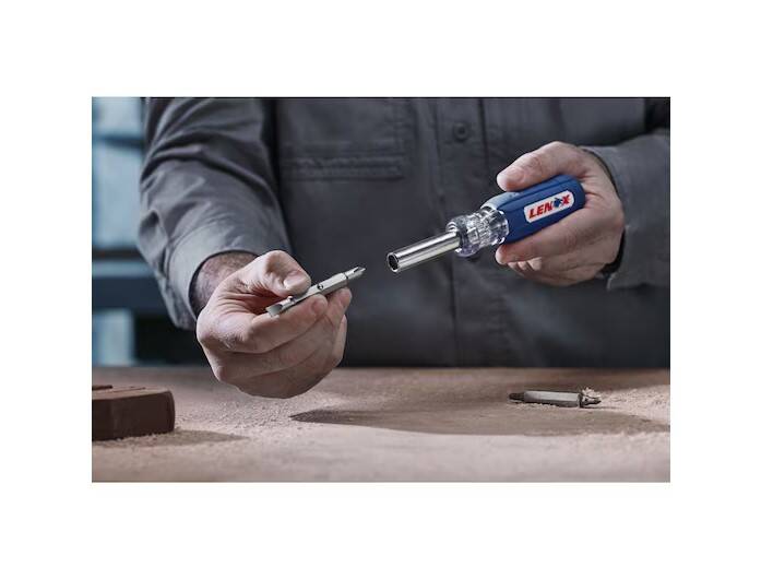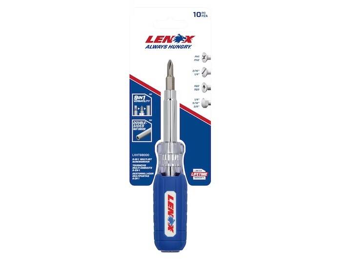 The LENOX® 9-IN-1 Multi-Bit Screwdriver has a dual-sided removable shaft offering 1/4", 5/16", and 3/8" nut driving capability.