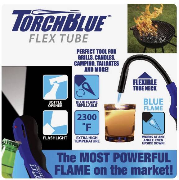 Great for grilling, candles, etc. Ergonomic handle for easy grip. Soft coated surface at grip. Bottle opener, LED light and torch flame.