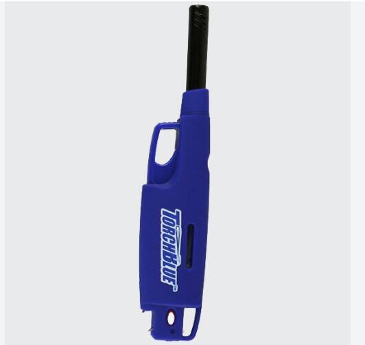 Our mini utility lighter conveniently measures only 5.5" long! It has a soft touch grip with a torch flame. Also features a bottle opener and an ultra bright LED light. Adjustable 2300ºF flame. Blue flame refillable — works at any angle, even upside down!