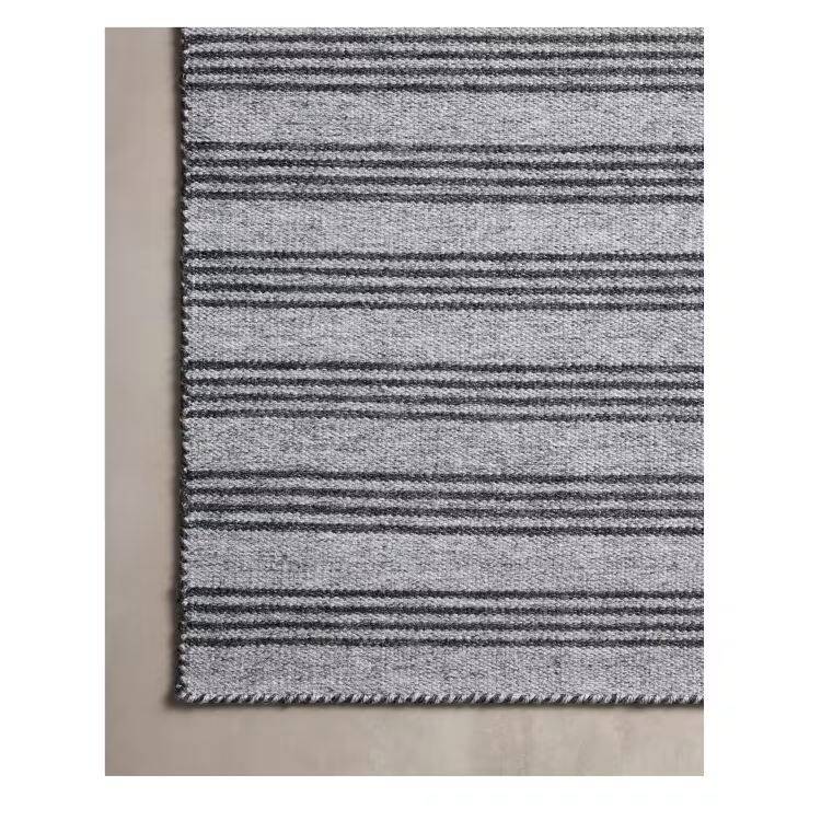 The Charlie Collection by Joanna Gaines x Loloi is an indoor/outdoor area rug with a timeless design inspired by ticking stripes. This easy-to-clean and durably made rug can hold up to high-traffic mudrooms and entryways, or anchor a backyard deck or patio. Charlie is hand-loomed of 100% recycled post-consumer polyester that saves post-consumer plastic bottles from ending up in landfills. This collection is made in India and GoodWeave-certified, ensuring our commitment to ethical production and the support of weavers’ communities. To clean, hose off and air dry.