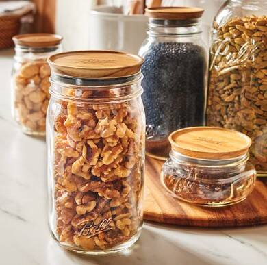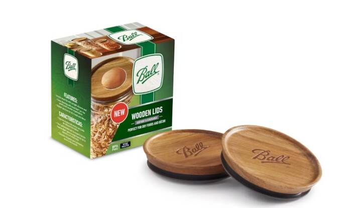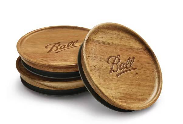 • Ball Wooden Wide Mouth jar lids are made with Acacia wood