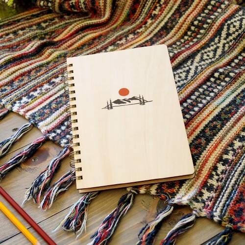 Rustic and durable, our wood cover spiral notebook or journal is perfect for outdoor journaling and travel logging. The real wood cover provides a hard surface for writing, and there is room at the top of every page for noting the subject and date. The perforated pages tear-out and fit neatly inside the back cover pocket.