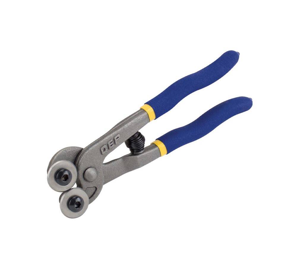 The QEP Glass Tile Nipper is designed to easily cut irregular shapes in glass tile, between 1/32 in. to 1/4 in. thick, without the use of conventional cutters. Use this nipper to trim glass tile to fit around pipes, cabinets, walls or create eye-catching glass mosaics. Simply hold the nipper like scissors, with the tile between the wheels, and squeeze the handles gently. The wheels do not need to turn when you are cutting.